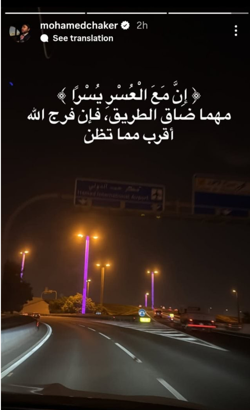 ونشر محمد شاكر على حسابه في “إنستغرام” ، عبارة قال فيها: “من مع العسرا .. تظن ”.