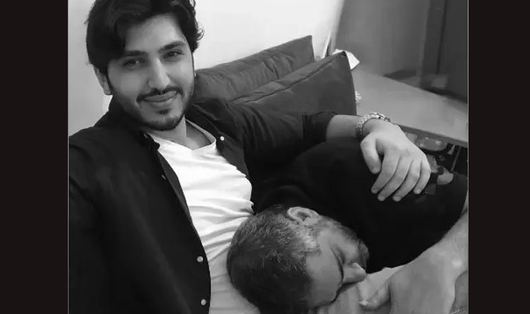 كما نشر صورة له مع والده ، حيث بدا الأخير نائمًا حضن ابنه.