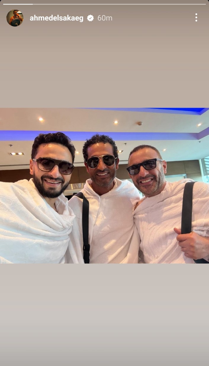 The artist Ahmed Al-Saqa posted a picture of the group with the help of the artist Omar Saad and Hamadda Hilal to perform the Hajj ceremony, and it came after his last comment. About the relationship تليقته مها الصغير من تعريق سبري.