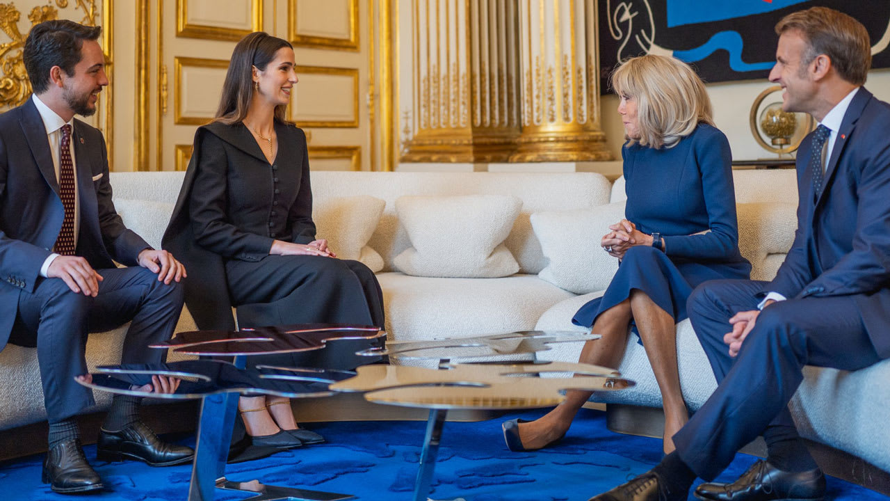 الأردن.. الأميرة رجوة تخطف الأنظار بفستان أسود مع الأمير الحسين بن عبدالله في لقاء جمعهما بماكرون وزوجته في باريس
