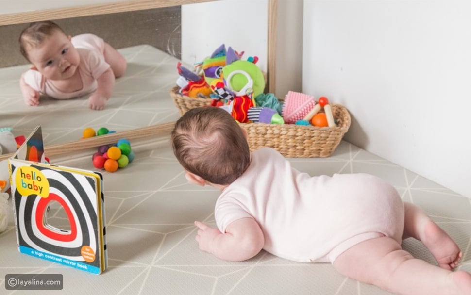- مرآة آمنة: اجعل الطفل ينظر إلى انعكاسه يبدأ التعرّف على الذات والتفاعل مظهره.