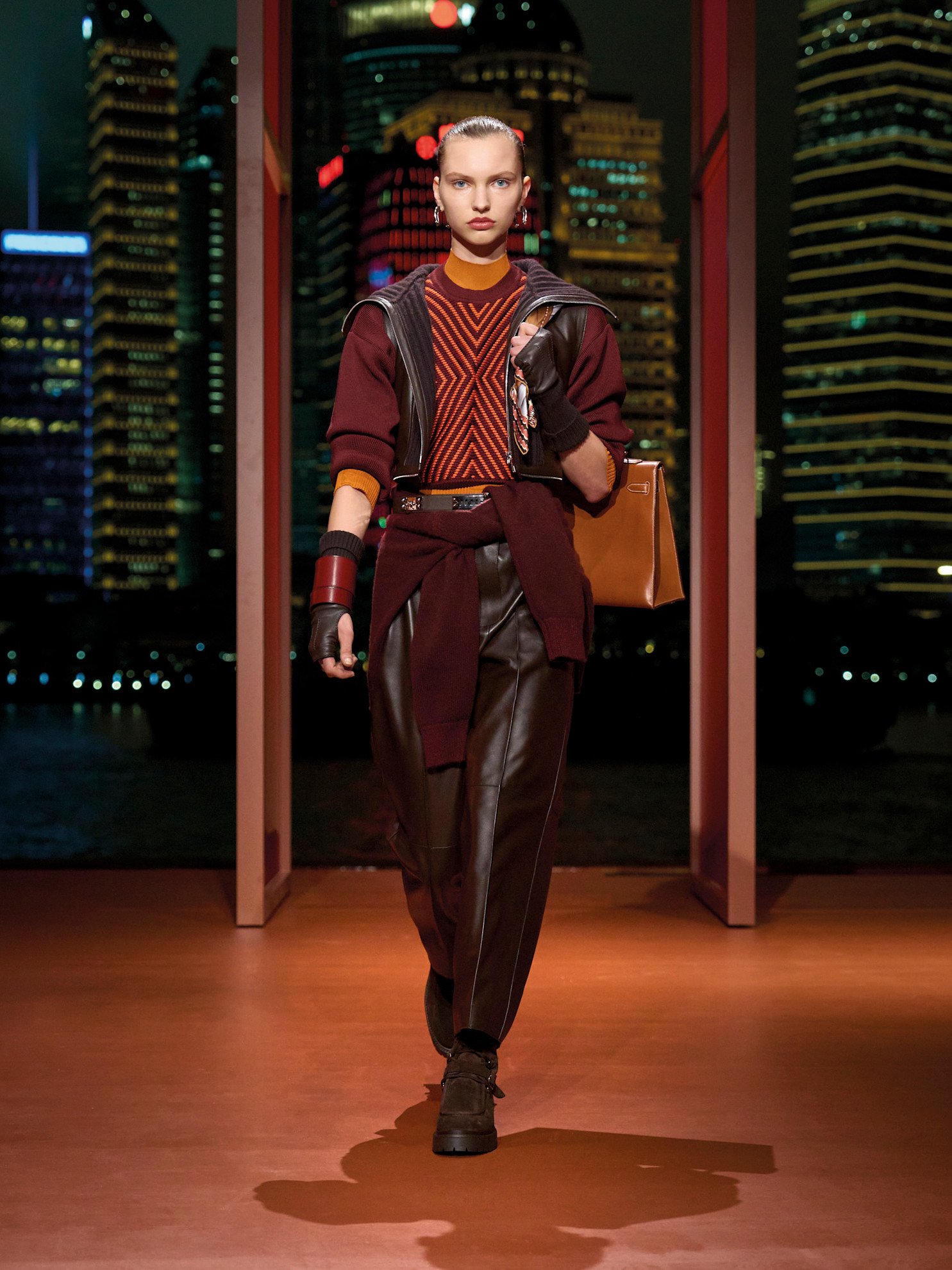 في خريف وشتاء 2025 – 2026 ، لم يعُد الجلد مجرد خامة شتوية ، بل أصة تعبّر الذات ، و Hermès أتق هذه الغة الوة أنيق ومعاصر. الألوان الدافئة تضيف لمسة من الراحة والاحتواء ، بينما تحافظ على جوهر الجلد كرمز للفخامة والقوة.