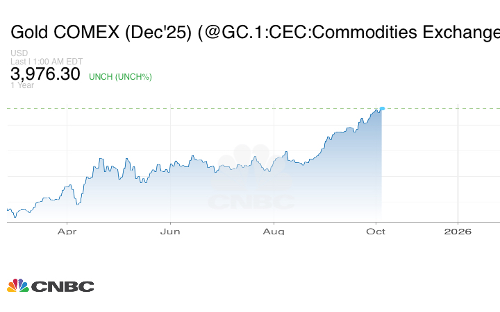 حذّر بنك أوف أميركا المستثمرين من التعامل بحذر مع الذهب، مع اقتراب سعر المعدن النفيس من مستوى 4,000 دولار للأونصة.