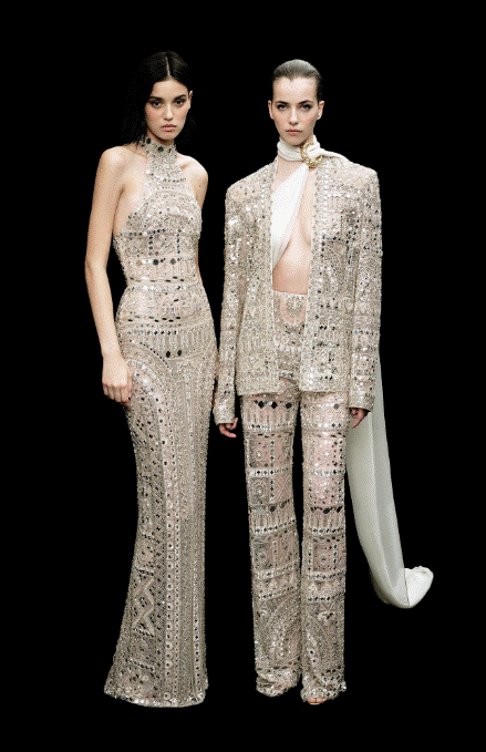 Brianka Choubra chose a look signed by the Lebanese designer Zuhair Murad, from the fashion group Aljahza Resort 2026. بقطاء تتريز مرايا فزي لافت, مكوّنة من توب حالتر من الطول عبيد من ساعة منصقة ما جاكيت و بنطلون ب لماع آست திக்க்க்கி