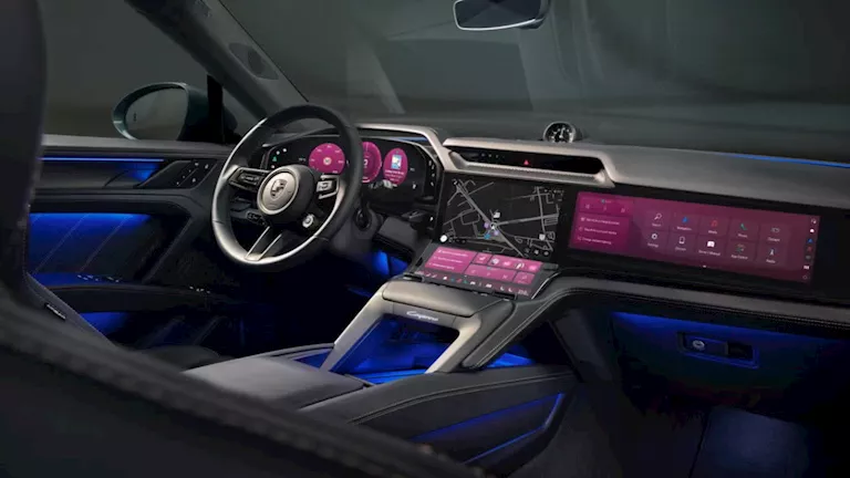 وتألق المقصورة الدالداخلية بقُمرة قيادة جديدة كليا ، والتي تشتمل على شاشة لمسية تمسيرة تمتد حتى الراكب الأمي وامي وi تمثل أكبر مساحة عرض في سيارة بورشه حتى الآن.