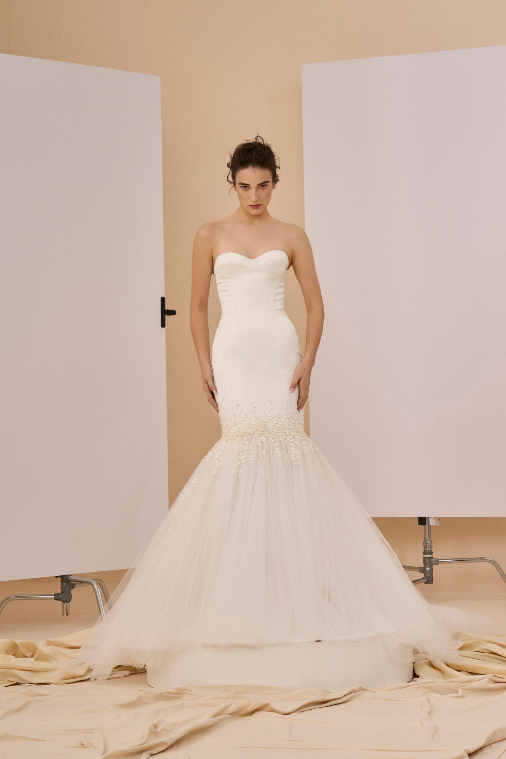 تستلهم مجموعة “وايت 8” من رحلة العروس العاطفية ، بحيث تُركز بشدة على الحِves تُبرز المجموعة تنوّع الأقمشة ، والتفاصيل المطرّزة يدوياً ، والتركيب ا مستمدةً مباشرة من خبرةë مجالi الأزياء الراقية. ومن السّمات المميزة لهذا الموسم ، عودة الكورسيه المُعاد تصميمه عصرية لتعزيز البنية والمة والشكل.
