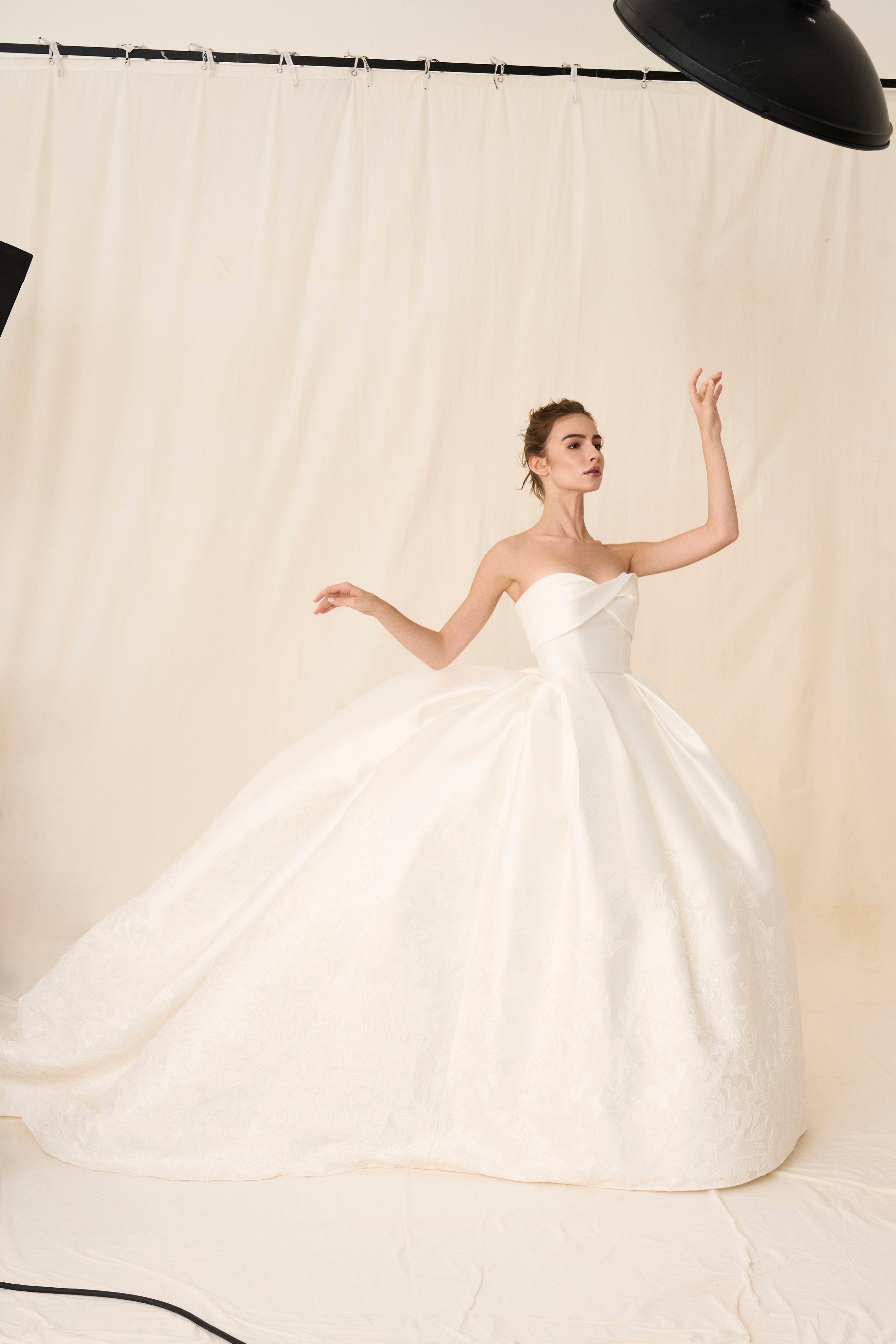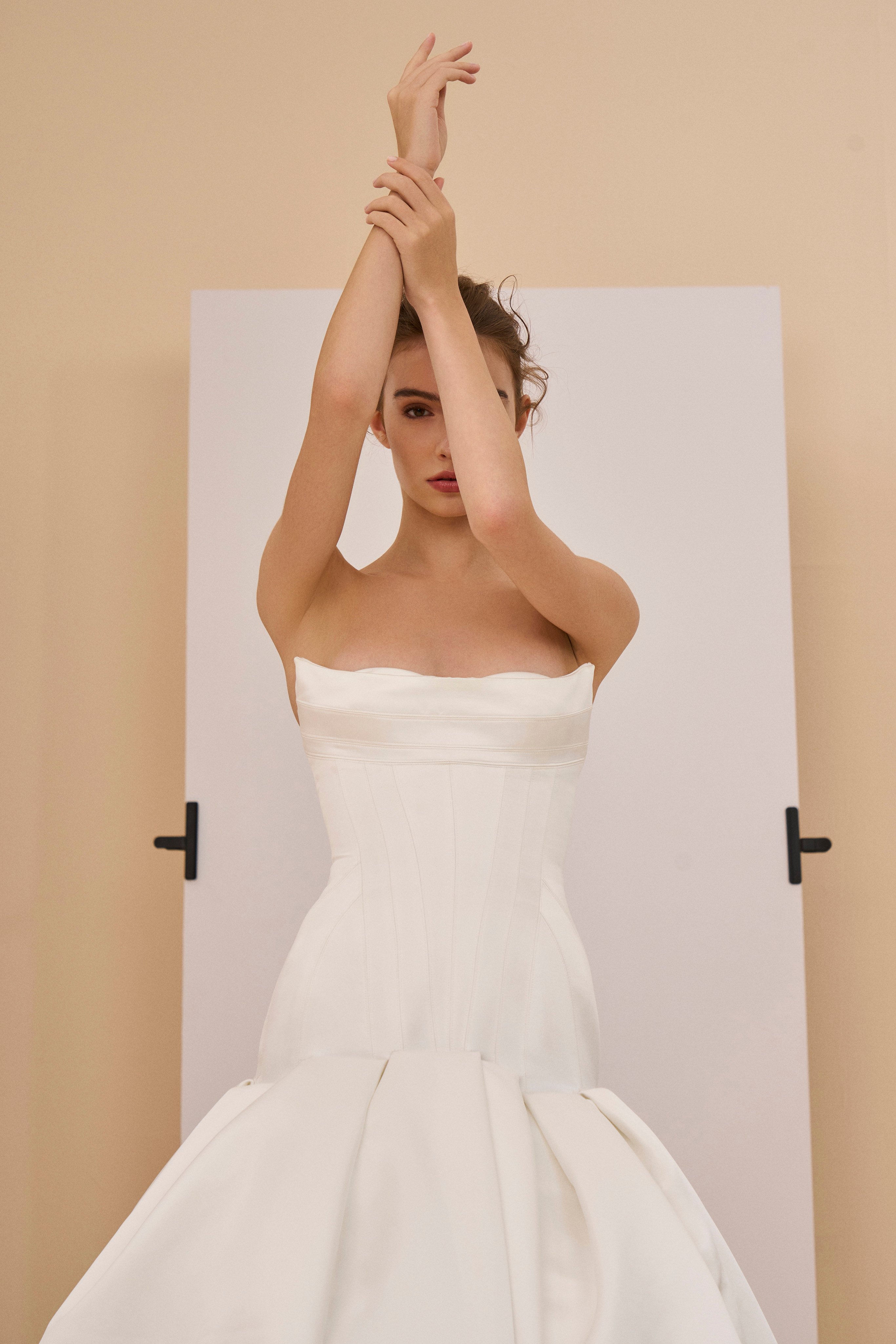 تستلهم مجموعة “وايت 8” من رحلة العروس العاطفية ، بحيث تُركز بشدة على الحِves تُبرز المجموعة تنوّع الأقمشة ، والتفاصيل المطرّزة يدوياً ، والتركيب ا مستمدةً مباشرة من خبرةë مجالi الأزياء الراقية. ومن السّمات المميزة لهذا الموسم ، عودة الكورسيه المُعاد تصميمه عصرية لتعزيز البنية والمة والشكل.