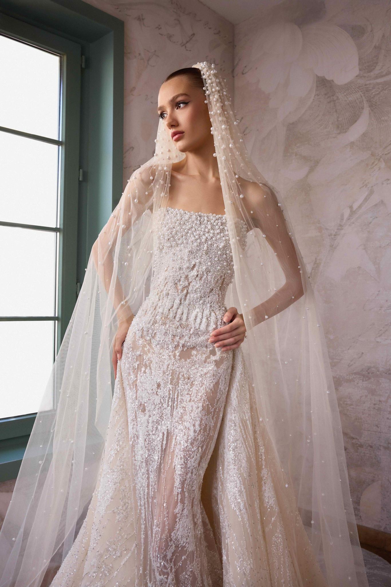 الدانتيل الساحر… لغة الحب المرئية في عيون طوني ورد تتألق الفساتين في هذه المجموعة بتفاصيل الدانتيل الزهري ثلاثي الأبعاد، الذي يتحرّك مع كل انحناءة للمرأة ويخلق حوارًا مستمرًا بين النسيج والضوء والحركة.اللؤلؤ الناعم المتلألئ يتخلل التطريزات، ليضيف وهجًا رقيقًا يجعل كل فستان يفيض بالفخامة والأنوثة، فيما تكمل خصور الباسك المنحوتة بعناية خطوط القوام بانسيابية متقنة، لتعكس انسجامًا بين القوة والنعومة.
