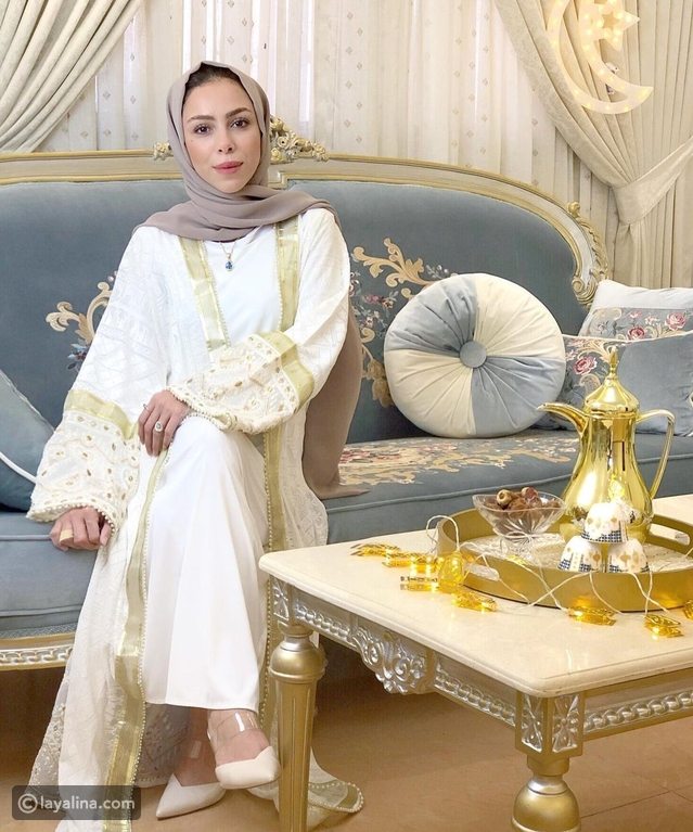 يمكنك اختياا العبايات المطرزة بشكل بسيط من خلال بعض التطريزات الذهبية التي تمحك إلالة براق ماسبة من ماسبة من مZةEC عند استقبال الضيوف. مثل الموديل الذي اعتمدت تسنيم أبو سيدو بشكل عصري ناعم وراقي عكس مظهر أنيق لها. ولكن انتبهي بتنسيقها مع إكسtt بسيطة كي لا تكون إلالتك مبالغة.