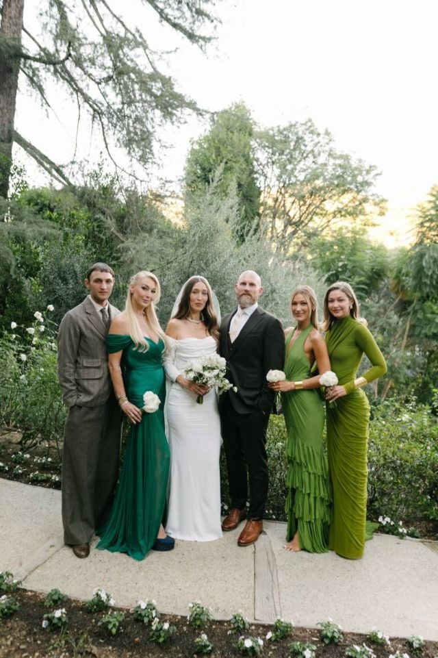 بيلا وجيجي حديد حافيتان في حفل زفاف أختهما بينما كانت آلانا حديد مذهلة في إطلالة زفافها بفستان أبيض كلاسيكي؛ لفتت وصيفتاها -بيلا وجيجي حديد- الأنظار إليهما بإطلالتهما، حيث ارتدت بيلا فستاناً أنيقاً منخفض الخصر مع ثنيات على الصدر وشق يصل إلى الفخذ في تنورتها المكشكشة. في الوقت نفسه، اختارت جيجي فستاناً ماكسي عالي الرقبة بأكمام منسدلة مزينة بأساور ذهبية. وقد عكست إطلالتهما أسلوباً مريحاً ومتناسقاً في آنٍ واحد.