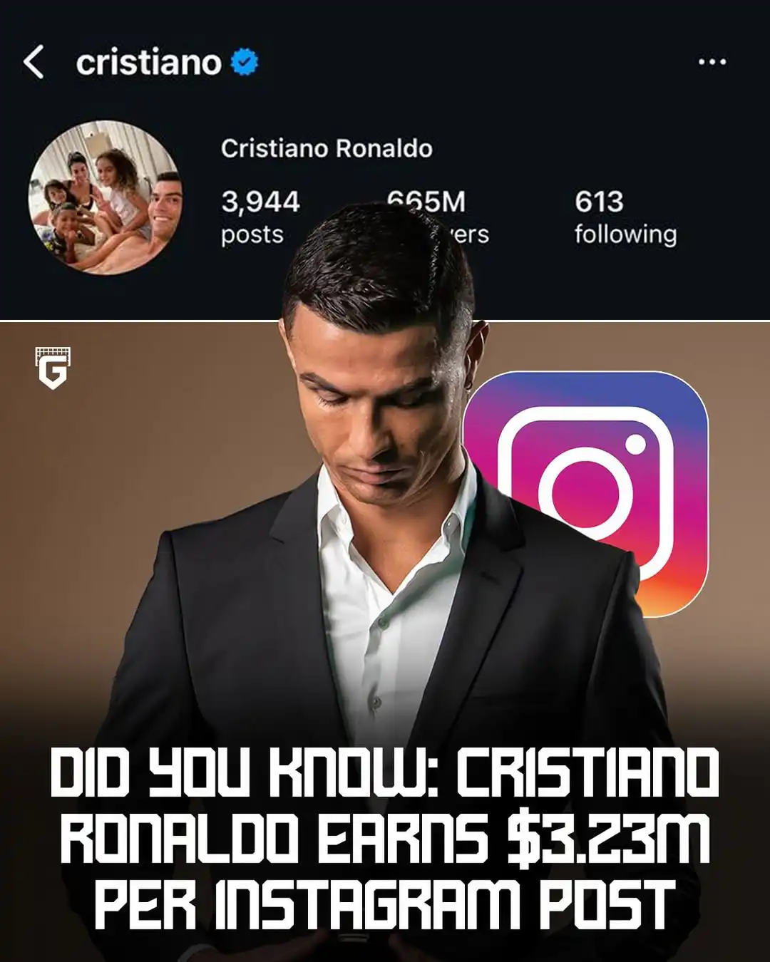 ووفقًا لإحدى الصفحات المتخصصة على “إنستغرام”، فإن قائد المنتخب البرتغالي يكسب نحو 3.23 مليون دولار عن كل منشور ينشره عبر حسابه الرسمي.