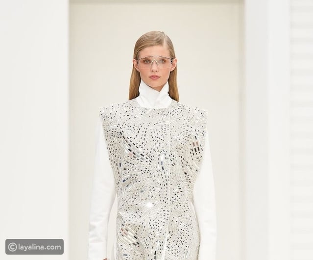 - افتُتح العرض بسلة من الإلطلالات باللون الأبيض بالكامل: قمصان طويلة فضفاضة ، فساتين بخوط خام ، وبنطلونات كارغو انسية. لم يكن اللون الأبيض مجرد حيادية ، بل كان إعلانًا عن النقاء ، وعن بداية صفحة جديدة.