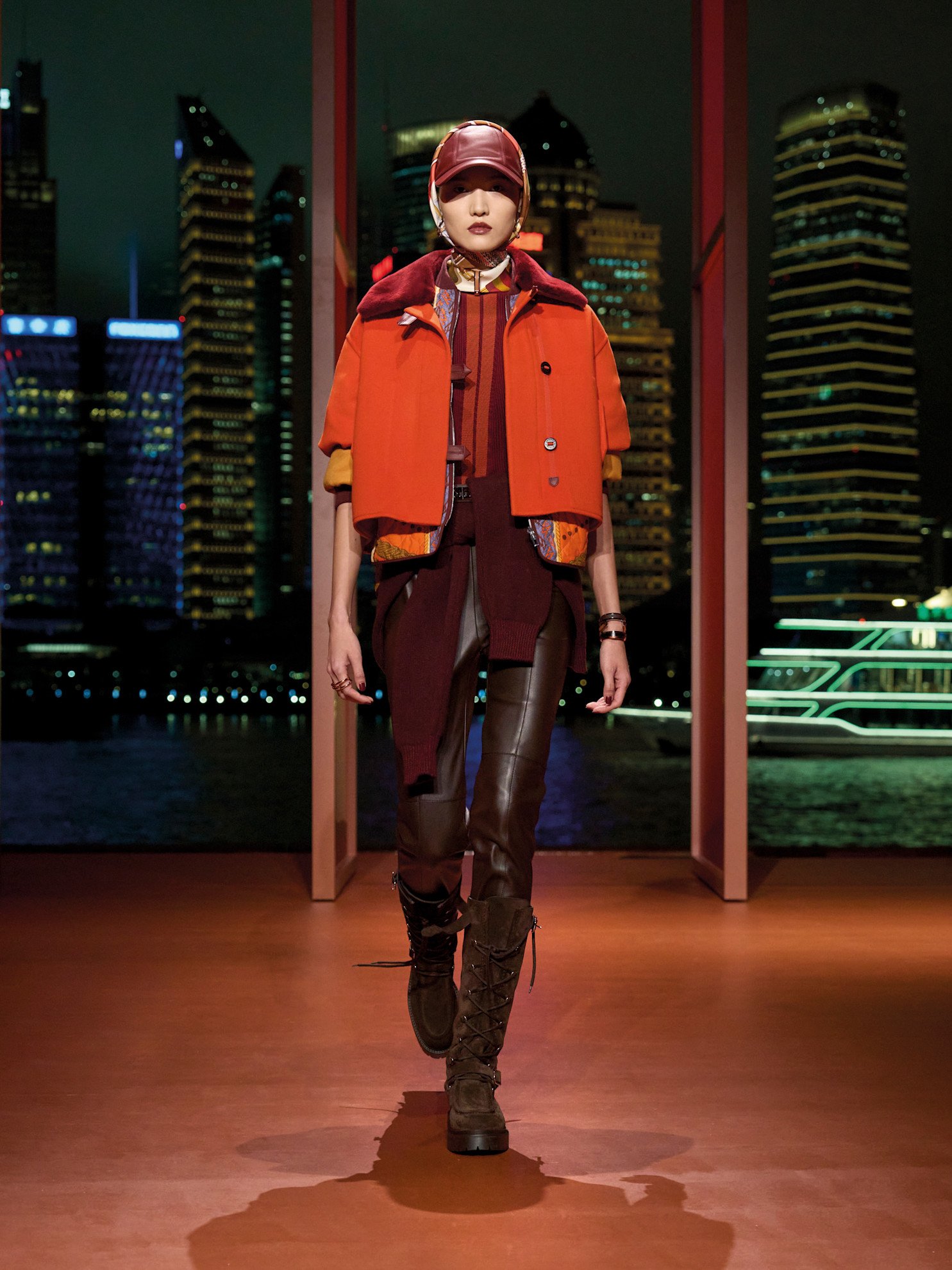 وفي عروضها الأخيرة ، رأينا كيف أعادت Hermès تقديم رموز الفروسية بلمسة حديثة: المعاطف الطويلة ذات ذاف المحدة ،د السروج التي تحوّلت إلى حقائب ، والأحذية الجلدية العالية التي أصحت القطعة الأسية لكل إلالة خريفية.
