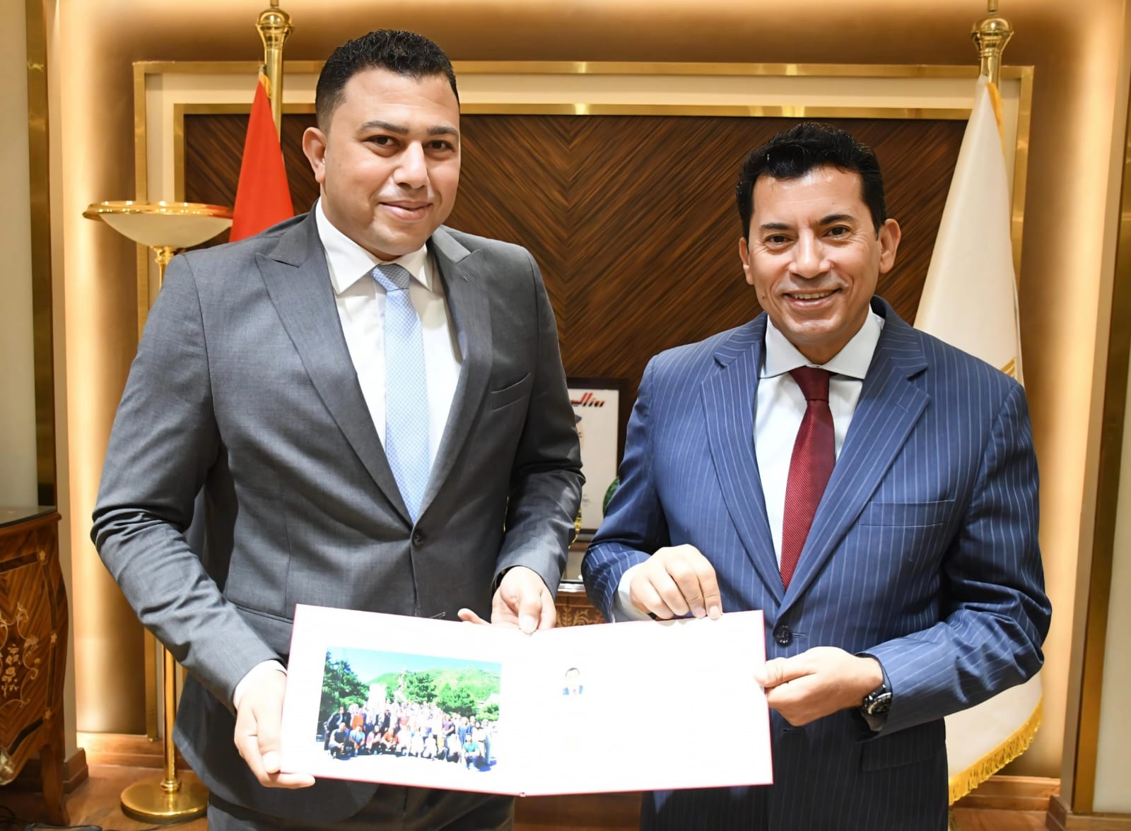 وأكد وزير الشباب والرياضة أن مصر مصر ماضية في تنفيذ استراتيجيتها الرامية إلى الارتقاء بالمنظومة الرية علىين على على على على ora المحلي والدولي ، مشيداً بالدور الفعال الذي قام به الوفد المصري خ these القطاع الرياضي في مصر.