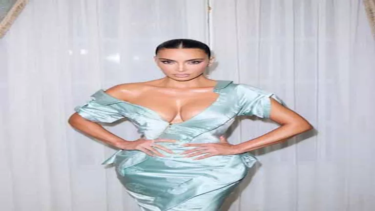 And Kim appeared in a dress made of satin fabric in blue and white, which made her appear in the shape of a “mermaid”, to get an impressive look. The audience is at the level of the world.