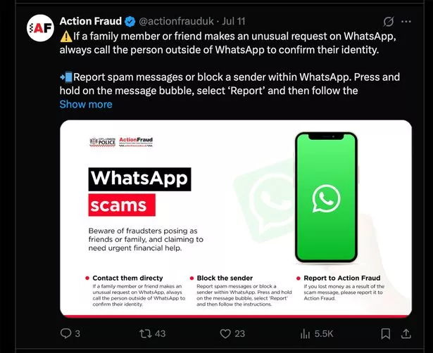 In a bid to stop more WhatsApp fans from becoming a victim, the team at Action Fraud has released a reminder telling UK users to be alert.