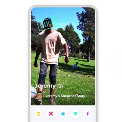 A Snapchat story appears on a user’s Tinder profile.