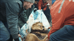 Rescuers Tote an Anesthetized Lion in ‘Checkpoint Zoo’