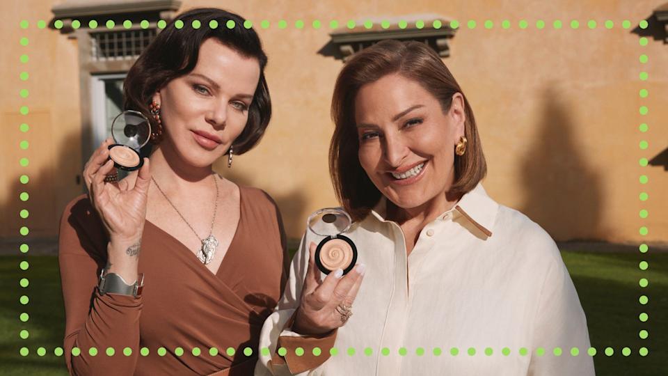 That confidence — and appreciation for beauty — is exactly what made Mazar a natural fit for Laura Geller’s line of makeup for women over 50. The duo’s recent campaign, shot on location in Italy, bridges Mazar’s life in Florence with the brand’s Italian-made roots. The shoot pays homage to Geller’s signature baked formulas. It also celebrates the return of the newly reformulated Baked Gelato Swirl Illuminator, a skin-glowifying highlighter that’s been updated specifically for the needs of mature skin.