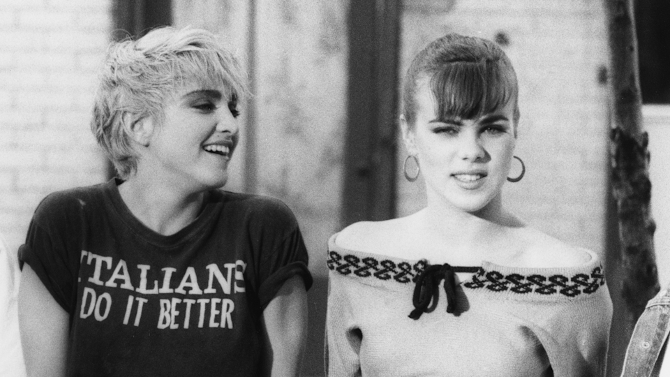 Mazar with Madonna while filming the video for ‘Papa Don’t Preach’ in New York in 1986. (Vinnie Zuffante/Getty Images)