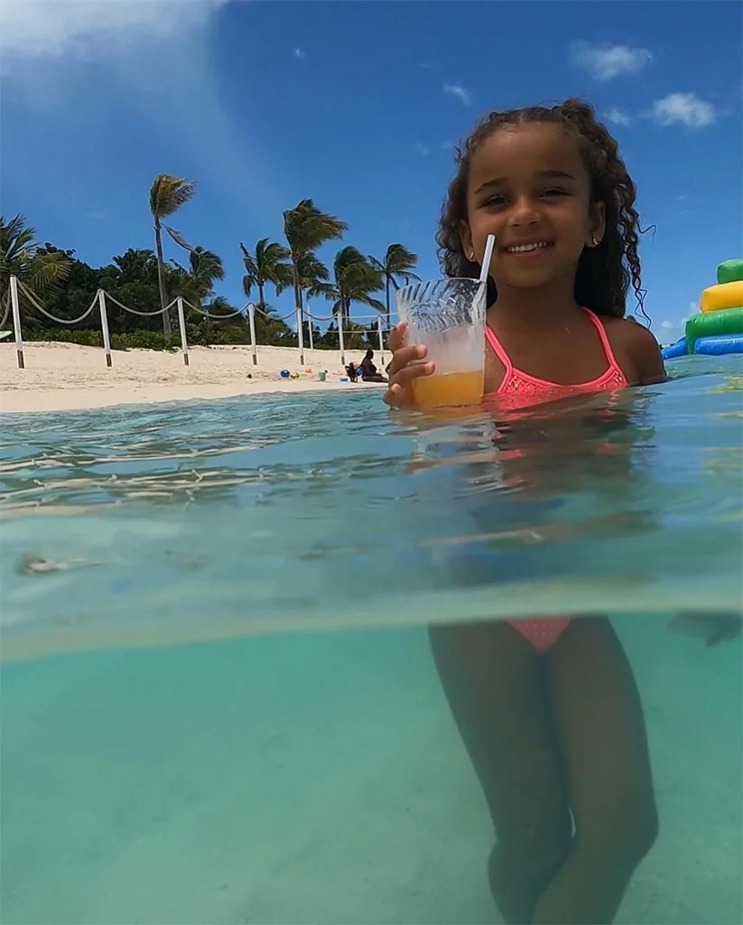 Dream Enjoyed a Tropical Drink while on Khloe’s Birthday Trip to Turks and caicos with the family in July.
