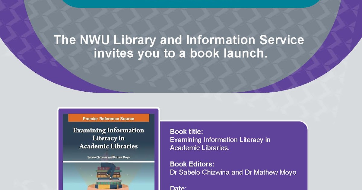 The North-West University (NWU) Library and Information Service (South Africa) is holding a hybrid launch of a book Examining Information Literacy in Academic Libraries edited by Dr Sabelo Chizwina and Dr Mathew Moyo. (Published by IGI) The launch is on 6 June 2024, at 14:30-16:30 Central Africa Time (which I think is 13.30-15.30 UK time). Register at
