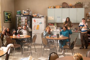 Image Credit: Disney / Sami Drasin Janelle James as Ava, Chris Perfetti as Jacob, Sheryl Lee Ralph as Barbara, Quinta Brunson as Janine, Tyler James Williams as Gregory, William Stanford Davis as Mr. Johnson, and Lisa Ann Walter as Melissa