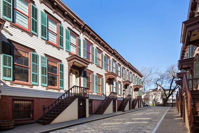 Up in Washington Heights, Squeezed BetWeen 160th Street and 161st, Is A One-Block-Long Anomaly: A COBBLESTONED STREET OF 20 WOOD-FRAME ROW HOUSES Built in 1882 that still look like it. There are Are Ten Homes on Each Side, All Painted to Match With Tan Façades, Green Shutters, Brown Gingerbread, and Wooden Steps Leading Up to Identical Stoops. or 1981 Preservation EFFORT Restored all the homes in one batch (Except for one Holdout, which late Caught up). These days, there’s a surreal theme-park Feeling to the block. Influencers come to shoot selfies against the romantic backdrops, and Hollywood blocks off the Road for Period Shoots (Sylvan Terrace Played “whore rowIn in Boardwalk Empire).