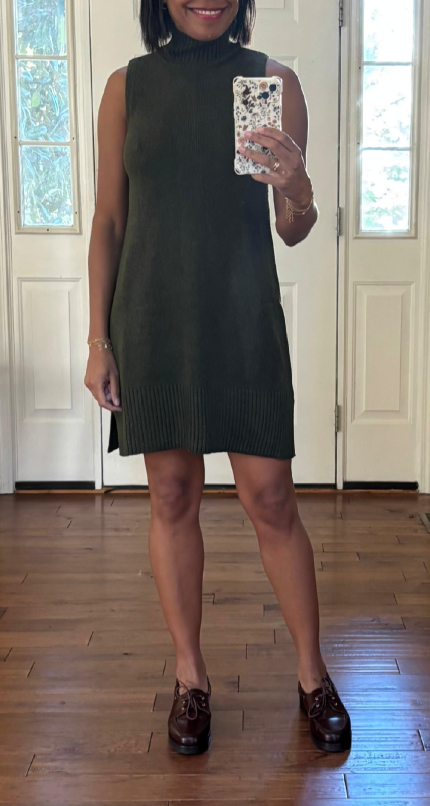I’m so torn about this dress. I love everyone about it – The Coziness, The Color, The Flattering Shape – Except that it is a bit too short for my liking. If you don’t mind showing your gams, then i can’t recommend this find Highly Enough. IT’S REALLY CUTE, AND NO ONE WAUDED EVER GUESS IT’S LESS THAN $ 30. If you’re more modest like, consider wearing it as a tunic with something coversing your legs underneath.