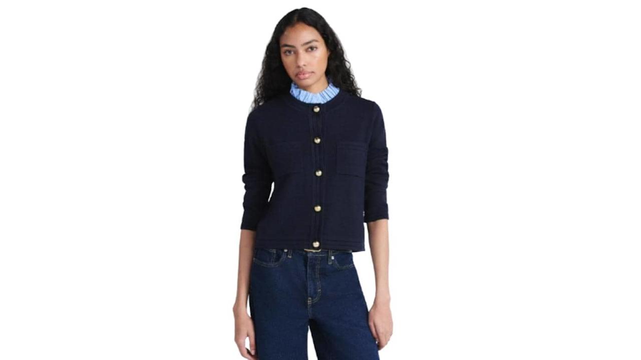 This Classic Striped Tee is a Dead Ringer for the J.Crew and Sezane Styles I love. But guess what? It ‘s a fraction of the price! I like that one is soft and drapey, and it can be worn on its or layered under a chunky cardigan. The 3/4-Three Sleeves Also Make It Feel Very French and Fashion-Forward. I’m partial to the navy and White Stripes, but there are two other color coombos to choose from.