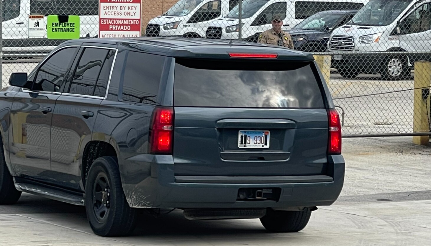 She has since declined to say who owns specific vehicles used by federal officers. That includes four cars missing plates, two — a Ford and a Chevrolet — photographed by the Sun-Times at the federal immigration processing facility in west suburban Broadview with the same license plate and a vehicle whose lone rear Illinois plate had three of its digits blacked out.