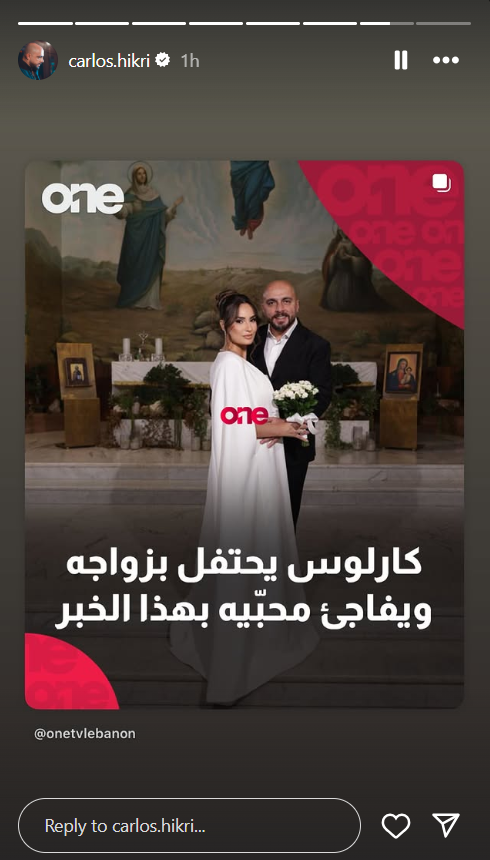 ونشر كارلوس عبر خاصية الستوري صورة من المناسبة ، فيما لم تُكشف بعد تفاصيل كثيرة العروس أو أو مكان الحفل.