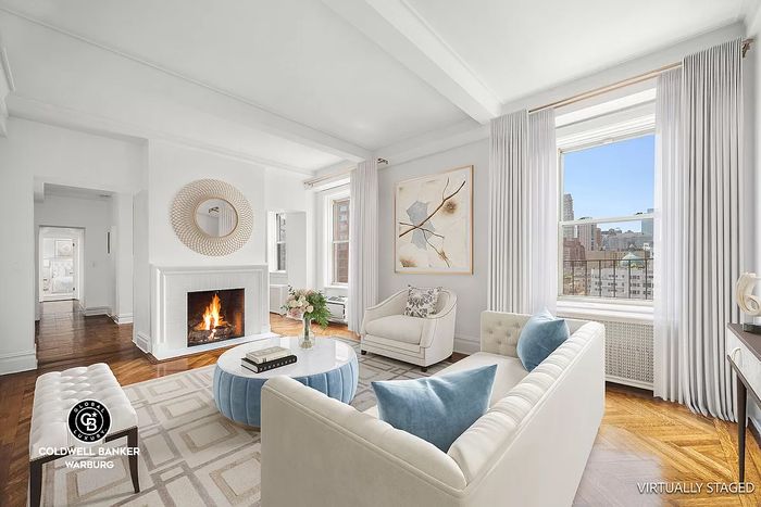 This-facing two-beedroom, two-bathroom co-op with open City views is on a high floor of a prewar doorman Building. The Living Room Has Herringbone Floors, Beamed Ceilings, and A Wood-Burning Fireplace. There’s a Small Dining Room off the Kitchen, and Both Bedrooms are nicery sized. The Kitchen and Bathrooms have Older Renovations-Though the Yellow-Tiled Bathroom Has an Abundance of Vintage Charm-SO the NEXT OWNER WILL WANT TO DO SOME UPDATING.