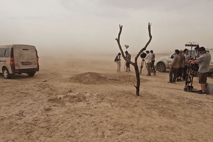 It Was Just an Accident was filmed over about four weeks in Tehran. Most of it occurs in a remote desert or in a van, the back of which the group stuffs itself into alongside Eghbal, whom they’ve blindfolded and restrained in a storage box. But certain climactic scenes also play out on Tehran’s bustling streets. “Panahi has this reputation as a street filmmaker in Iran,” Akrami explains, because of his early tendency to embed himself within the public and hide in plain sight. Still, they were raided once by police, who swarmed the production as they were filming in the Shahrak-e Gharb neighborhood in the summer of 2024. No one quite knows how their location was leaked—maybe it was because it was their second day filming in the same location, Jafari says—but Panahi and his team were prepared. They slid an empty memory card into a camera and handed it over. Editor Amir Etminan had all the footage filmed until that point saved on his laptop in the back of the car, along with a bag of prop SLR cameras that wedding photographer Shiva uses in the film. As the police were searching his car, Etminan feinted toward the bag of cameras and pretended to be protecting them passionately, leading the authorities to believe they held footage. They left with the empty memory card and the prop cameras, while the laptop remained. The crew waited nearly three weeks before going back into production for three final days.