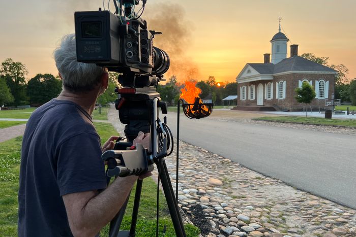 There are also reenactors in costume, which is a little unexpected. Many documentarians are disdainful of such performances, and Burns avoided working with them on The Civil War. “They kind of had, for me, a cartoony thing,” he recalls. This time was different, partly because “you realize how deadly serious they take it.” (It helps that, although there is plenty of racism baked into the story of the American Revolution, there isn’t a lost-cause mythos. Very few Americans pine for the days under the Crown.) “So I said, we’re going to follow reenactors and shoot them impressionistically. And in many points, some of our visual solutions are because they didn’t want our cameras anywhere near them. We would say, ‘We can fly a drone.’ And they go, ‘Yeah, but not low. No, not that low.’” Many of those scenes, as a result, are near-abstractions that still tell a pivotal part of the story. A brief shot of a Black-skinned hand on a gun reminds viewers that thousands of fighting men, both Tory and rebel, had been or were enslaved. An arresting and beautiful overhead shot of a line of soldiers advancing unevenly across the emerald grass and brown dust of a field in New Jersey frames the first episode’s title.