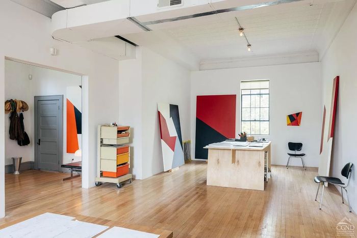 This listing Photo Shows How You Can Throw a Bunch of Modern Art Inside of A Masonic Temple and Call It Home.