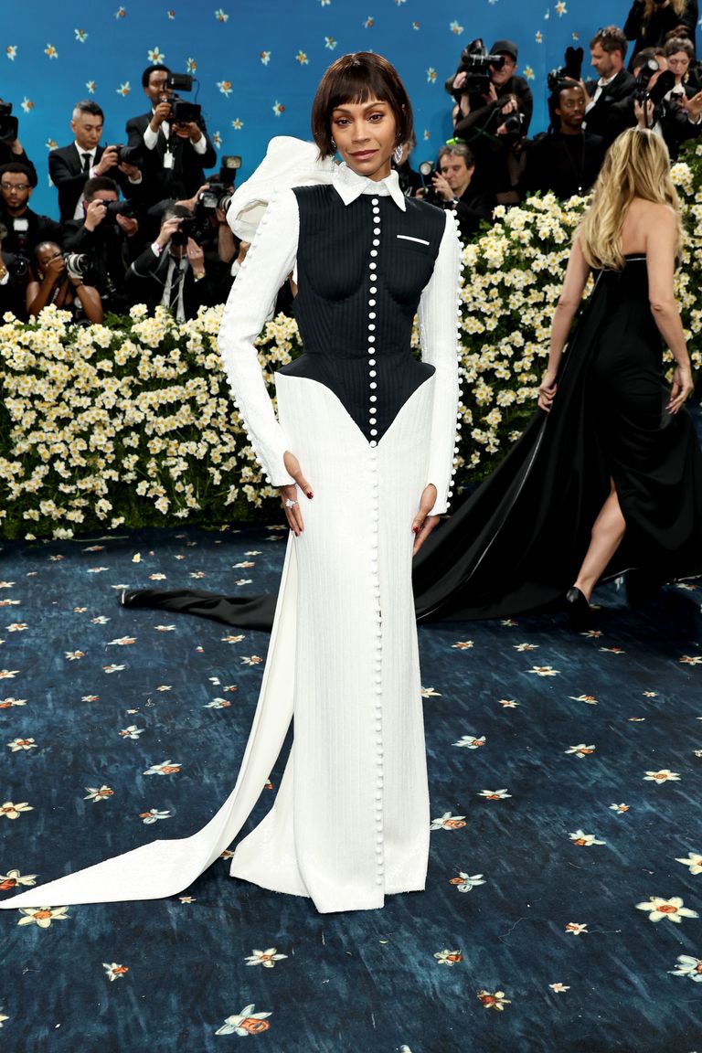 Zoe Saldana in Thom Browne Photo: Jamie McCarthy/Getty Images