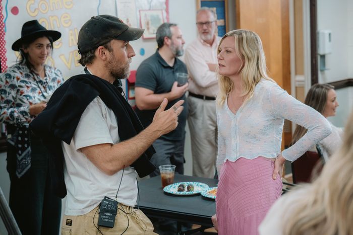 Derek Cianfrance on the set of Roofman with Kirsten Dunst.