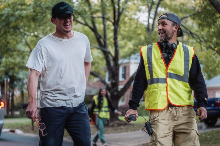 Channing Tatum and Derek Cianfrance on the set of Roofman.