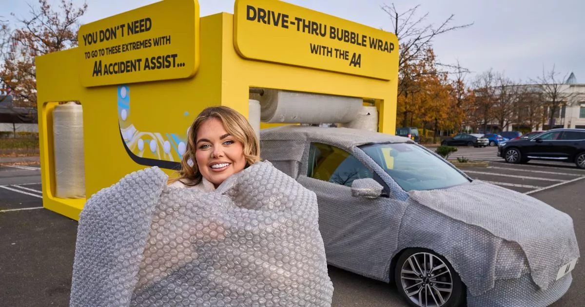Scarlett Moffatt tests new ‘drive-thru bubble wrap machine’ to protect cars from parking damage