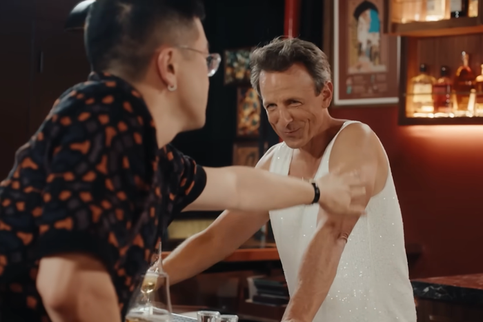 This is a link-up for the ages. Every Time Seth Meyers Interacts with Las Culturistas, it’s the best vibe hands down. That’s Why Meyers Has Won “Best Vibe, Hands Down” Two Years in A Row at the Las Culturistas Culture Awards. The Innocent Flirting BetWeen These Three Men Who Do Not Want to Fuck Each Other Will Keep Fan Editors Fed for at Least Two Months. And with the “name the iconic diva pop song in one second or take a shot” bit, the Late Producers Have Developed a Game that will Will Echo on Through Gay Music Video Nights for Centuries to Come. I COULD TELL Matt Rogers and Bowen Yang Did Not Want That Game To End. And in Living Rooms Across Weho, It Won’t.