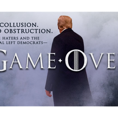 It’s finally Mueller report day, baby. And if you had “Donald Trump tweets Game of Thrones meme to celebrate” on your Mueller bingo card … congrats! You win. This morning, following a press conference where Attorney General William Barr once again said the Mueller report found “no collusion” on the president’s part, the president celebrated on Twitter. “GAME OVER,” read the tweet in GOT’s signature font. It’s laid over a picture of Trump walking away into a cloud of darkness. All of this is very comforting and normal.