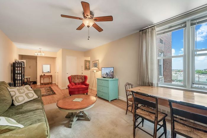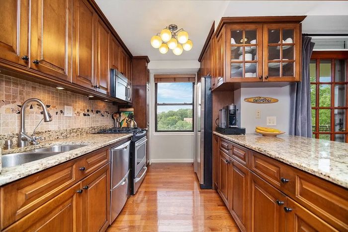 This co-op in sunnyside towers Needs some… sprusing up, but it is a corner unit with hardwood floors and laundry in the building. The monthlies are doable at $ 894, and it comes with a heated outdoor pool that look sizable and quote, a reminder that a pool doesn’t have to be luxe to be enjoyable.