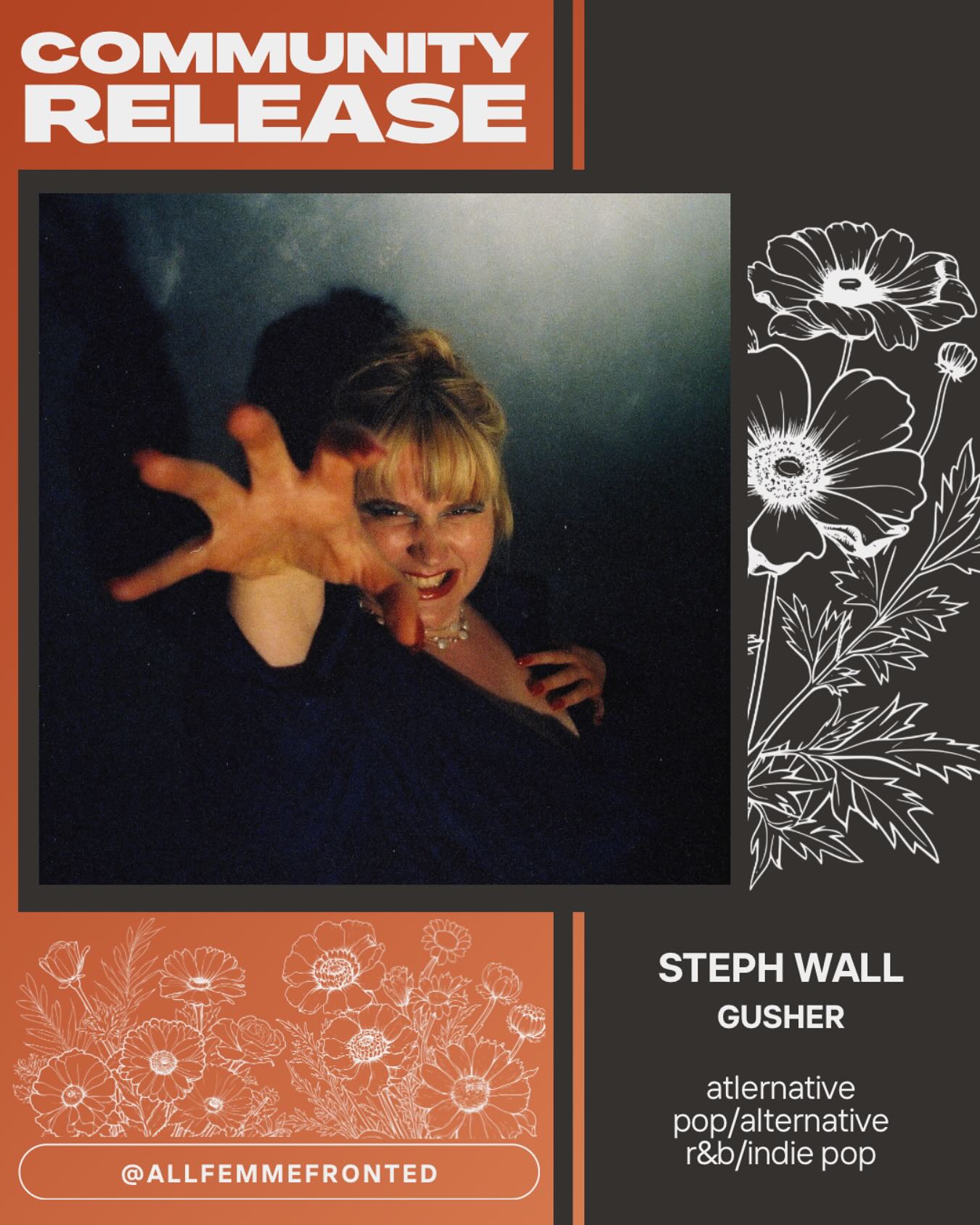 “Gusher”, the latest release from artist Steph Wall, is a queer crush dance track. Bringing the listener into the adventure of “will they won’t they,” Wall expresses the journey to figuring out whether to divulge feelings to her crush with enticing stacked back up vocals and anticipation.