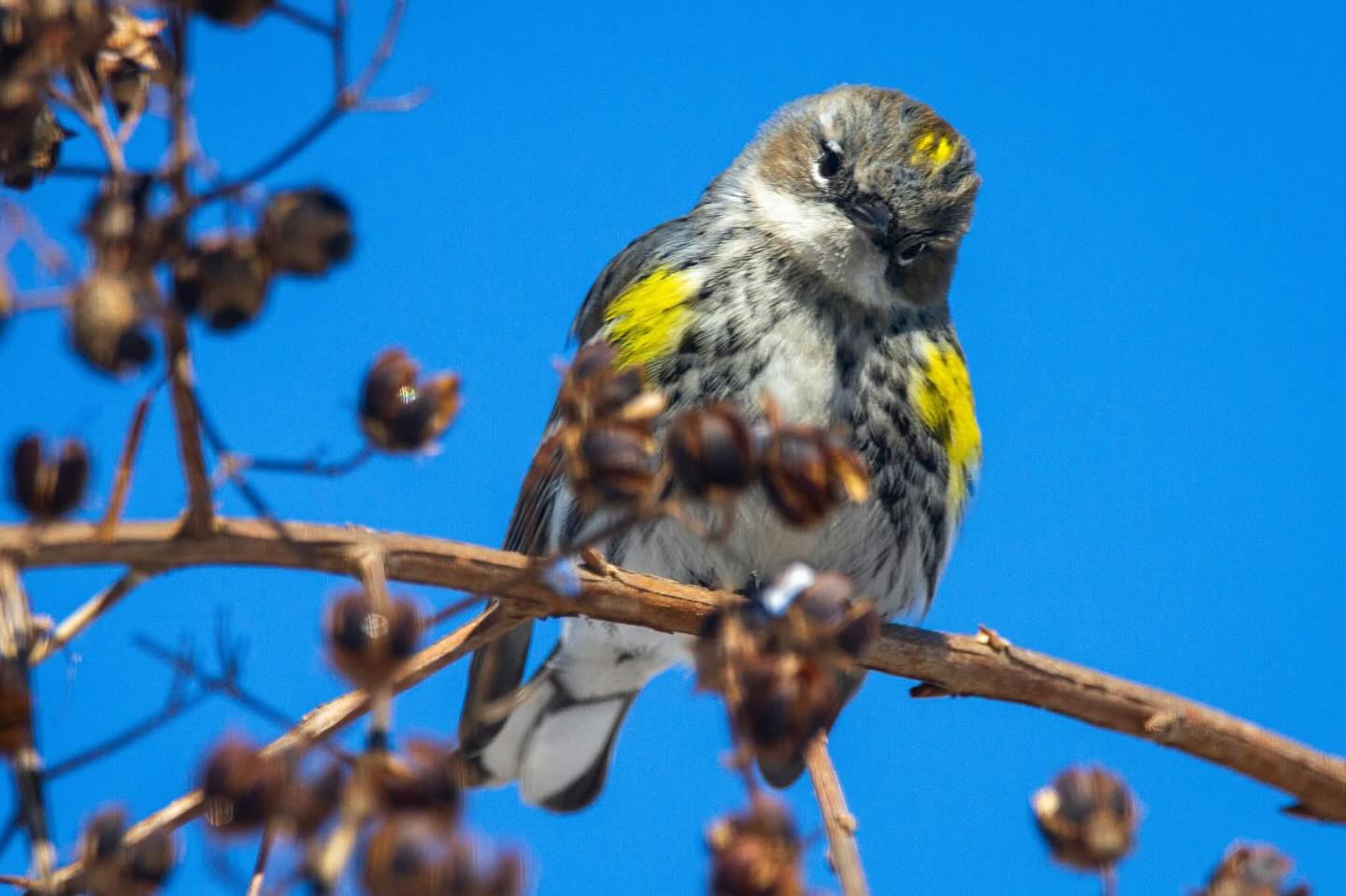 We picked this sunny snap of a yellow-rumped warbler perched on a tree branch to remind you that sunshine and warmer days are coming. Is there a chance of a second winter before that in the UK? Always!